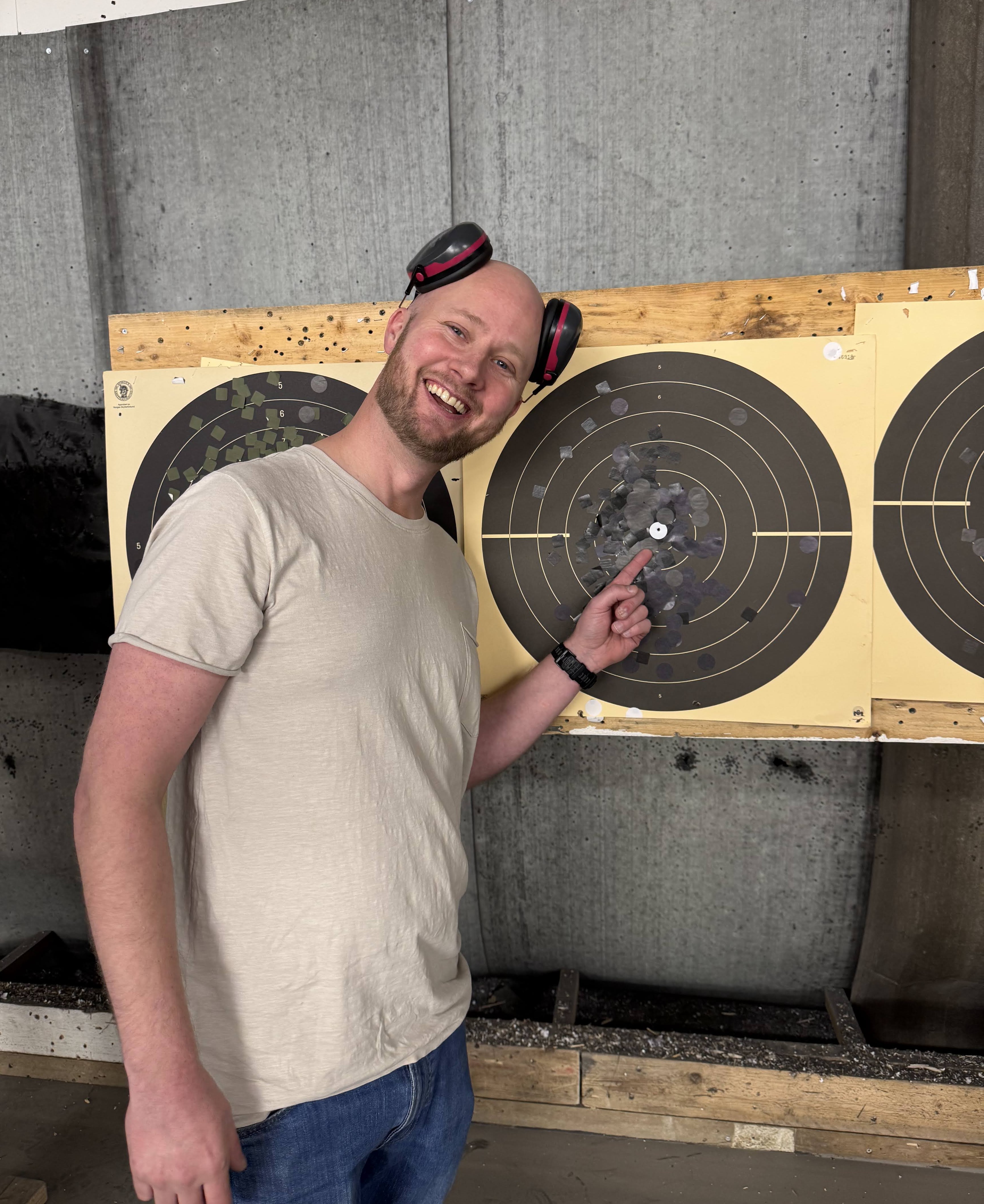 Starter dagen hos Stjørdal Sportsskytterklubb. Her skal vi få prøve oss på skyting med luftpistol, vanlig pistol og rifle. Før vi får skyte må vi gjennom en grundig gjennomgang av alle sikkerhetsregler og en omvisning på anlegget. Med godt humør og dyktige instruktører får vi alle skutt med de forskjellige våpen og avslutter det hele med en konkurranse. Profesjonelt opplegg av Stjørdal Sportsskytterklubb!